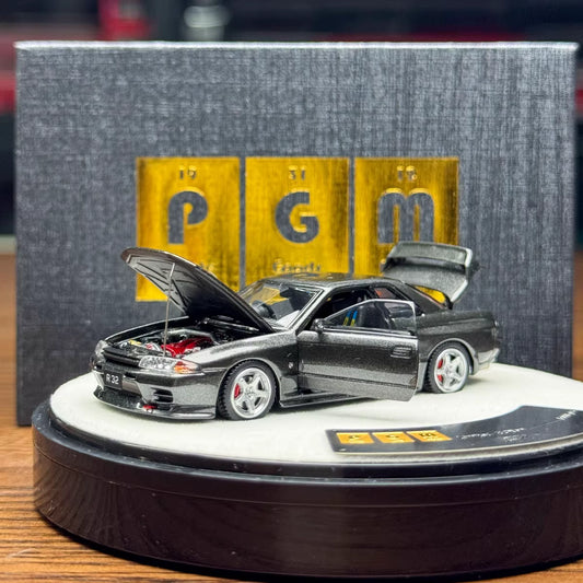 PGM 1:64 Nissan Skyline GT-R R32 Metallic Grey Openable Doors Front Hood Rear Bonnet (Normal Rectangle Box Edition)