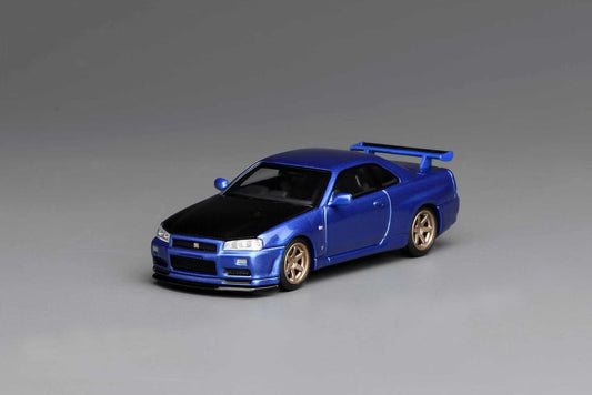 Motorhelix 1:64 Nissan Skyline GT-R R34 Nismo Z-Tune Bayside Blue Openable Front Hood Detailed Engine Official Licensed (Premium Box Packaging)
