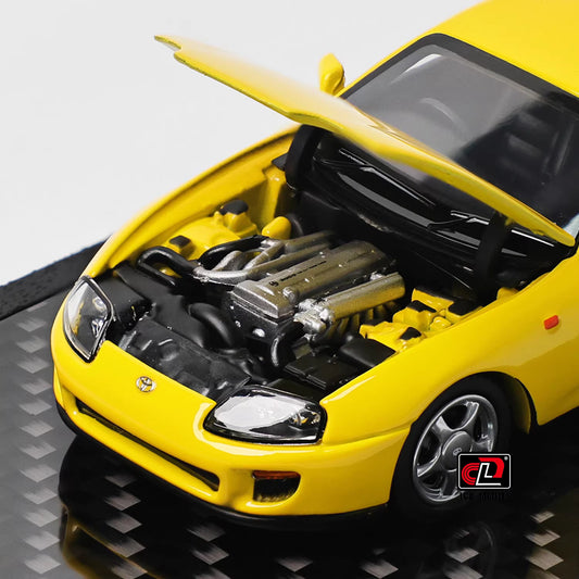 LCD 1:64 Toyota Supra Mk4 A80 Yellow Official Licensed Openable Front Hood Detailed Engine