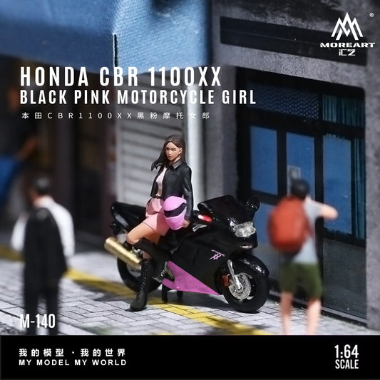 MoreArt 1:64 Honda CBR 1100XX Black Pink Motorcycle Doll Set (1 Motorcycle + 1 Figure)