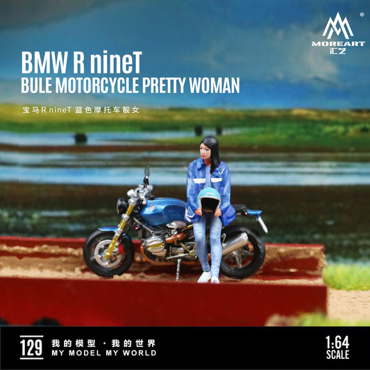 MoreArt 1:64 BMW R NineT Blue Motorcycle Pretty Woman Figure Set (1 Motorcycle + 1 Figure)