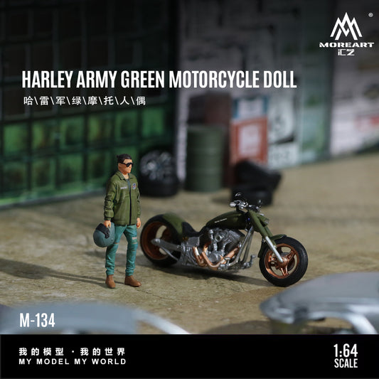 MoreArt 1:64 Harley-Davidson Army Green Motorcycle Doll Figure Set (1 Motorcycle + 1 Figure)