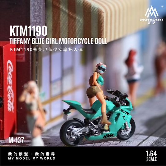 MoreArt 1:64 KTM 1190 Tiffany Blue Girl Motorcycle Doll Figure Set (1 Motorcycle + 1 Figure)