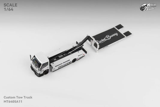 Micro Turbo 1:64 Hino 300 Series MK2 Custom Extendable Tow Truck Flatbed Livery PANDEM Rocket Bunny Metallic White