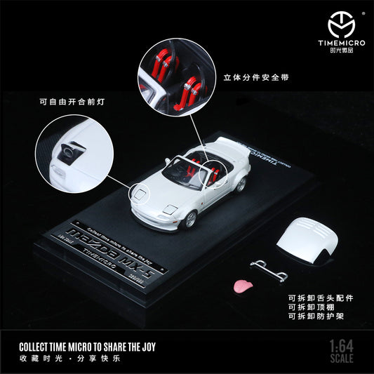 Time Micro 1:64 Mazda MX5 MX-5 White Foldable Head Lights Removable Roof with Model Girl Figure