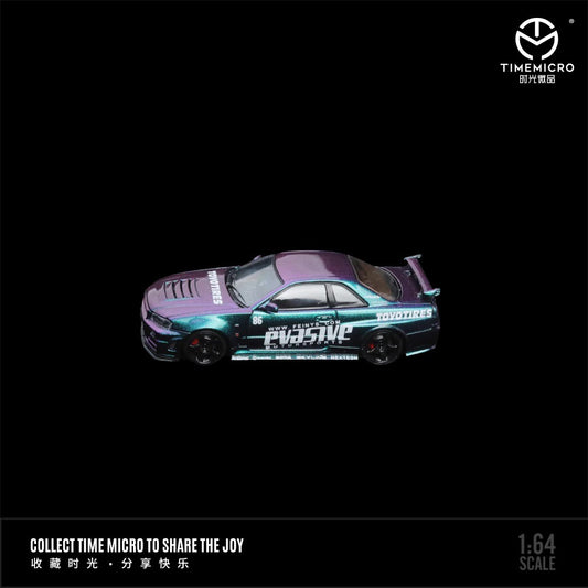 Time Micro 1:64 Nissan Skyline GT-R R34 Z-Tune Openable Engine Hood Evasive Motorsports Purple