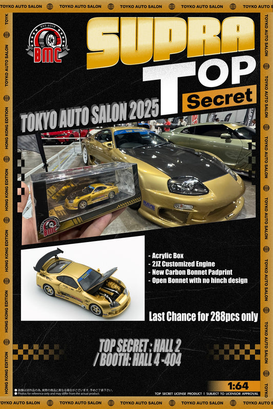 BM Creations Toyota Top Secret GT300 Supra (JZA80) Gold Openable Engine Hood with Detailed Engine (Hong Kong Toy Salon 2024)