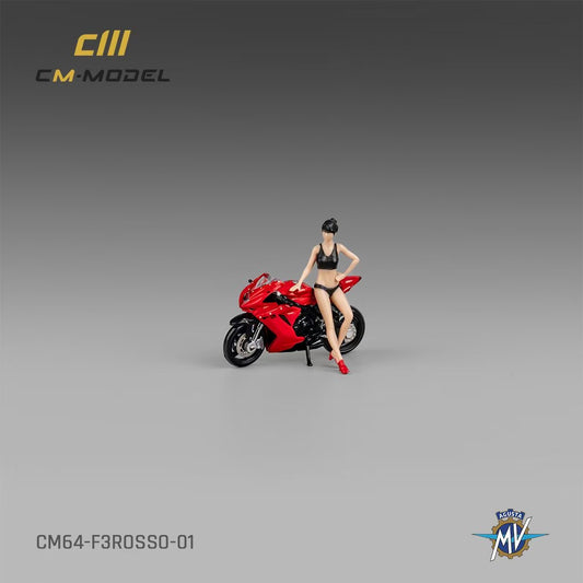 CM Model 1:64 MV Agusta F3 Rosso Red Moving Front Fork with Model Girl Figure