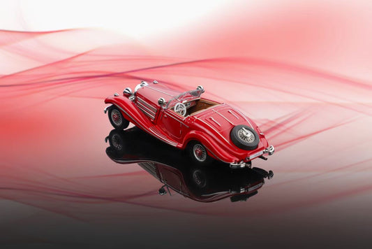 Liberty64 1:64 Mercedes-Benz 500K (W29) Red (Flocked Foot Pads, Hardware Details, Wooden Platform + Acrylic Transparent Box + Flip-Top Gift Box Packaging)