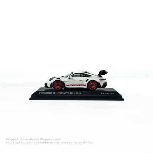 MINICHAMPS 1:64 PORSCHE 911 (992) GT3 RS - 2024 - WHITE W RED DECOR EXCLUSIVE FOR CLDC