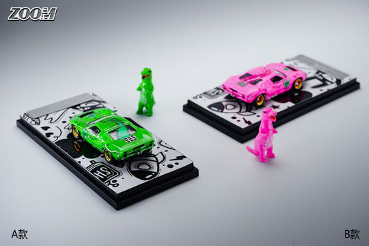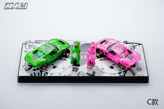 Zoom 1:64 Ford GT40 MK1 (P/1075) Tyrannosaurus Rexy and Roxy Green and Pink 2 Cars Set with 2 Dinosaur Figures