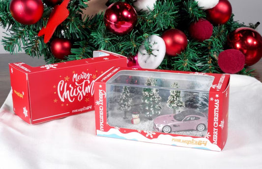 Fine Works 1:64 Mercedes Benz AMG GT MK1 C190 GTR 2017 Metallic Pink Christmas Editionn with Christmas Diorama Limited 500 Pieces