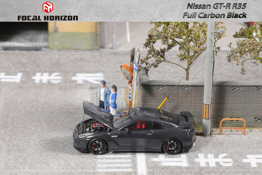 Focal Horizon 1:64 Nissan Skyline GT-R R35 Full Carbon Black Openable Engine Hood