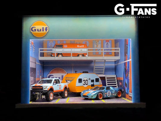 G-Fans 1/64 Gulf Double Levels Garage LED Light Diorama with acrylic cover