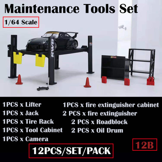 G-Fans 1/64 Garage Car Lift & Repair Tools Set for Diorama- Black (710012A)