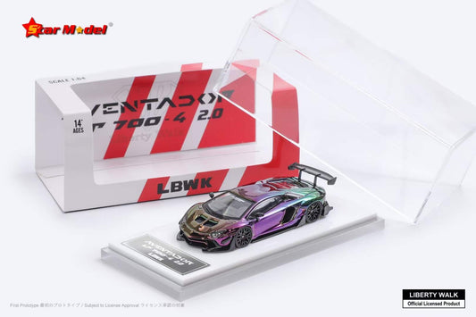 Star Model 1:64 Lamborghini Aventador LP700-4 LBWK 2.0 Official Licensed Chrome Carbon Gradient Chameleon Purple Green