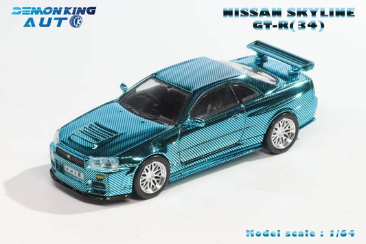 Demon King Auto 1:64 Nissan Skyline GT-R R34 Z-Tune Openable Engine Hood Full Carbon Blue