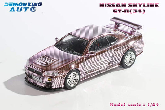 Demon King Auto 1:64 Nissan Skyline GT-R R34 Z-Tune Openable Engine Hood Full Carbon Pink
