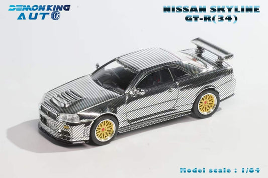Demon King Auto 1:64 Nissan Skyline GT-R R34 Z-Tune Openable Engine Hood Full Carbon Silver
