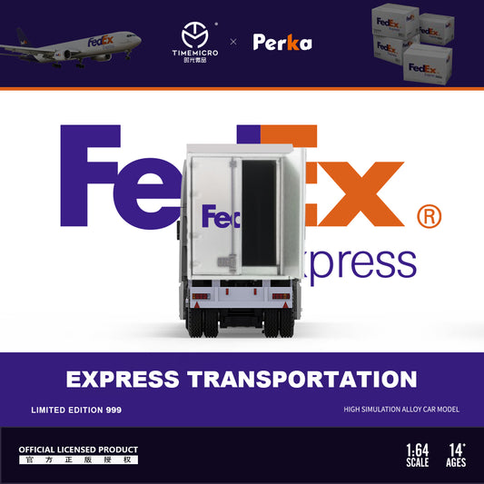 Time Micro x Perka 1:64 Freightliner Truck Express Transportation Openable Engine Hood FedEx Edition