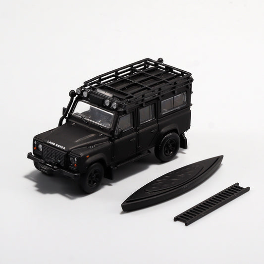 Master Model 1:64 Land Rover Defender 110 Matt Black Edition with Roof Rack + Kayak + Ladder