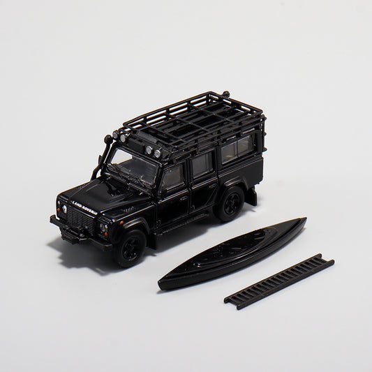 Master Model 1:64 Land Rover Defender 110 Camel Trophy Edition Black Hood with Roof Rack + Kayak + Ladder
