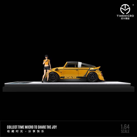 Time Micro 1:64 Volkswagen Beetle RWB Yellow with Model Girl Figure
