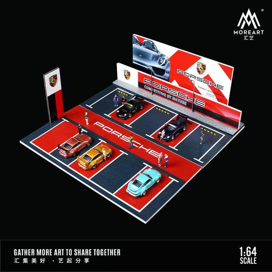 MoreArt 1/64 Car Park Parking Lot Scene Outdoor Diorama with LED Light- Porsche Edition
