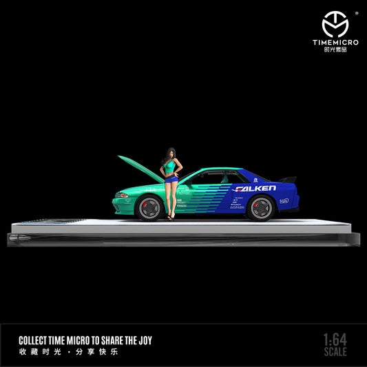 Time Micro 1/64 Nissan Skyline GT-R R32 Open Bonnet Engine Hood -Falken Edition with Model Girl Figure