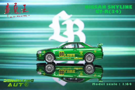 Demon King Auto 1:64 Nissan Skyline GT-R R34 Z-Tune Openable Engine Hood #88 Transparent Green
