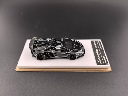 [Premium Resin Model] Fine Works 1:64 Lamborghini Aventador LP700-4 Roadster Convertible Liberty Walk Edition Tron Black White Panel Lines Limited 199 Pieces
