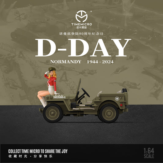 Time Micro 1/64 Willys MB Jeep Military 4x4 4WD SUV World War II D-Day Normandy 80th Anniversary Edition with Model Girl Figure