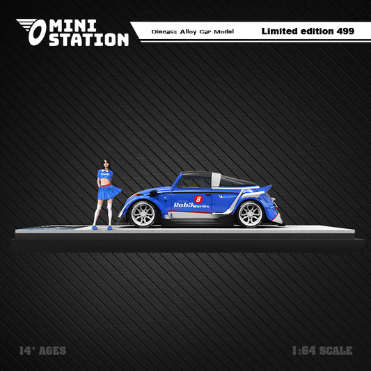 Mini Station 1/64 Volkswagen Beetle RWB Targa Blue and White with Model Girl Figure