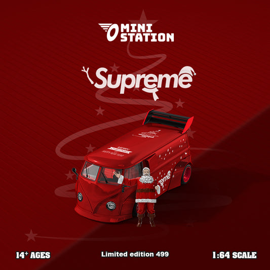 Mini Station 1:64 Volkswagen T1 Kombi Camper Van Metallic Red Supreme Christmas Edition with Santa Claus Model Figure
