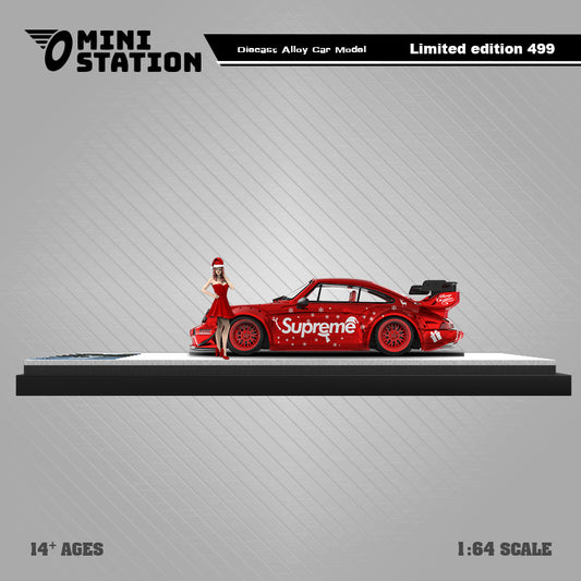Mini Station 1:64 Porsche RWB 964 Metallic Red Supreme Christmas Edition with Christmas Girl Model Figure