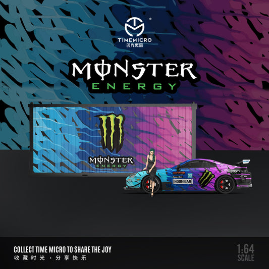 Time Micro 1:64 Toyota Supra A80Z Black Monster Energy Edition with Metal Cargo Container and Model Girl Figure