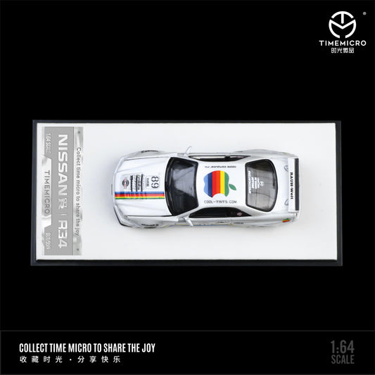 Time Micro 1:64 Nissan Skyline GT-R34 White Apple Edition Openable Engine Hood