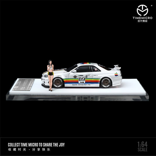Time Micro 1:64 Nissan Skyline GT-R34 White Apple Edition Openable Engine Hood with Model Girl Figure
