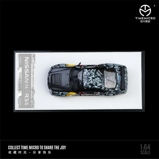 Time Micro 1:64 Nissan Skyline GT-R34 Red Bull Camouflage Edition Openable Engine Hood