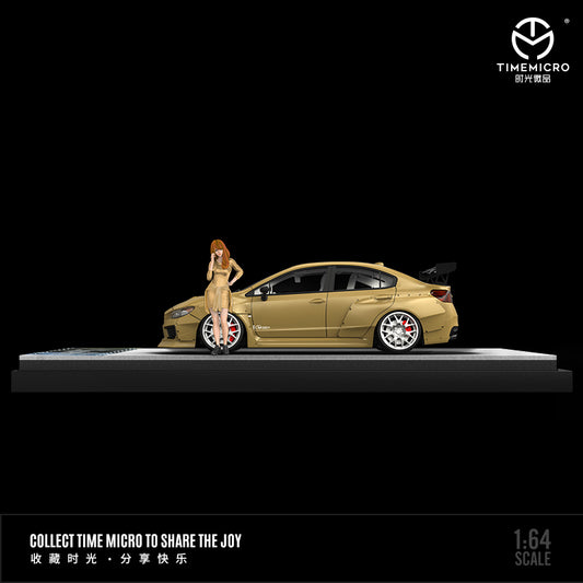 Time Micro 1:64 Subaru WRX STI Gold with Black Carbon Hood with Model Girl Figure