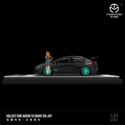 Time Micro 1:64 Subaru WRX STI Black with Black Carbon Hood with Model Girl Figure