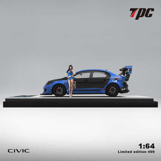 TPC 1:64 Honda CIVIC Type-R FD2 Modified Blue with Model Girl Figure