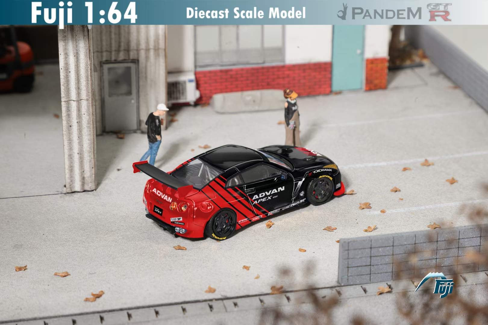 Fuji 1:64 Nissan Skyline GT-R R35 Pandem Rocket Bunny Black Red ADVAN High Spoiler Edition