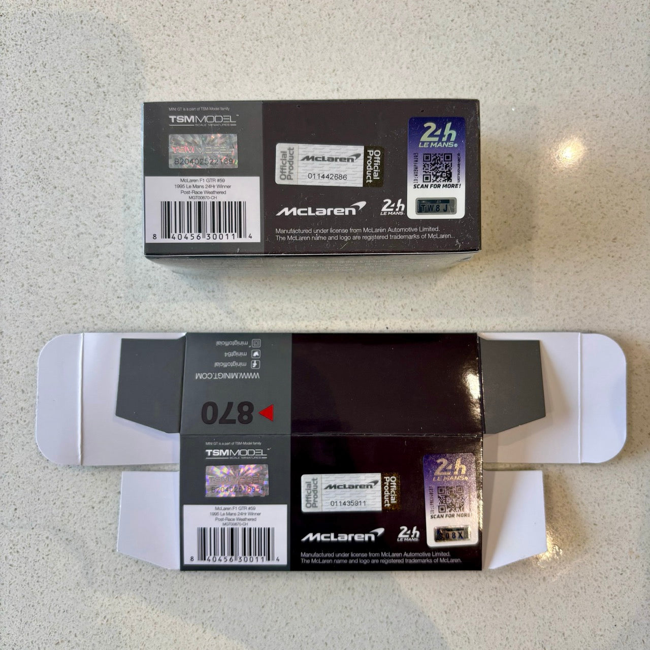 (Damaged Box with Replacement) Mini GT 1:64 McLaren F1 GTR #59 1995 Le Mans 24Hr Winner Post-Race Weathered (MGT00870-CH)
