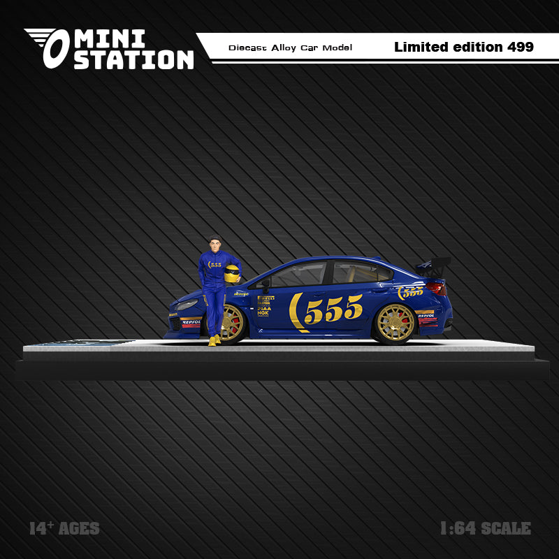 Mini Station 1/64 Subaru WRX STI 555 WRC Rally Car with Racer Miniature Figure