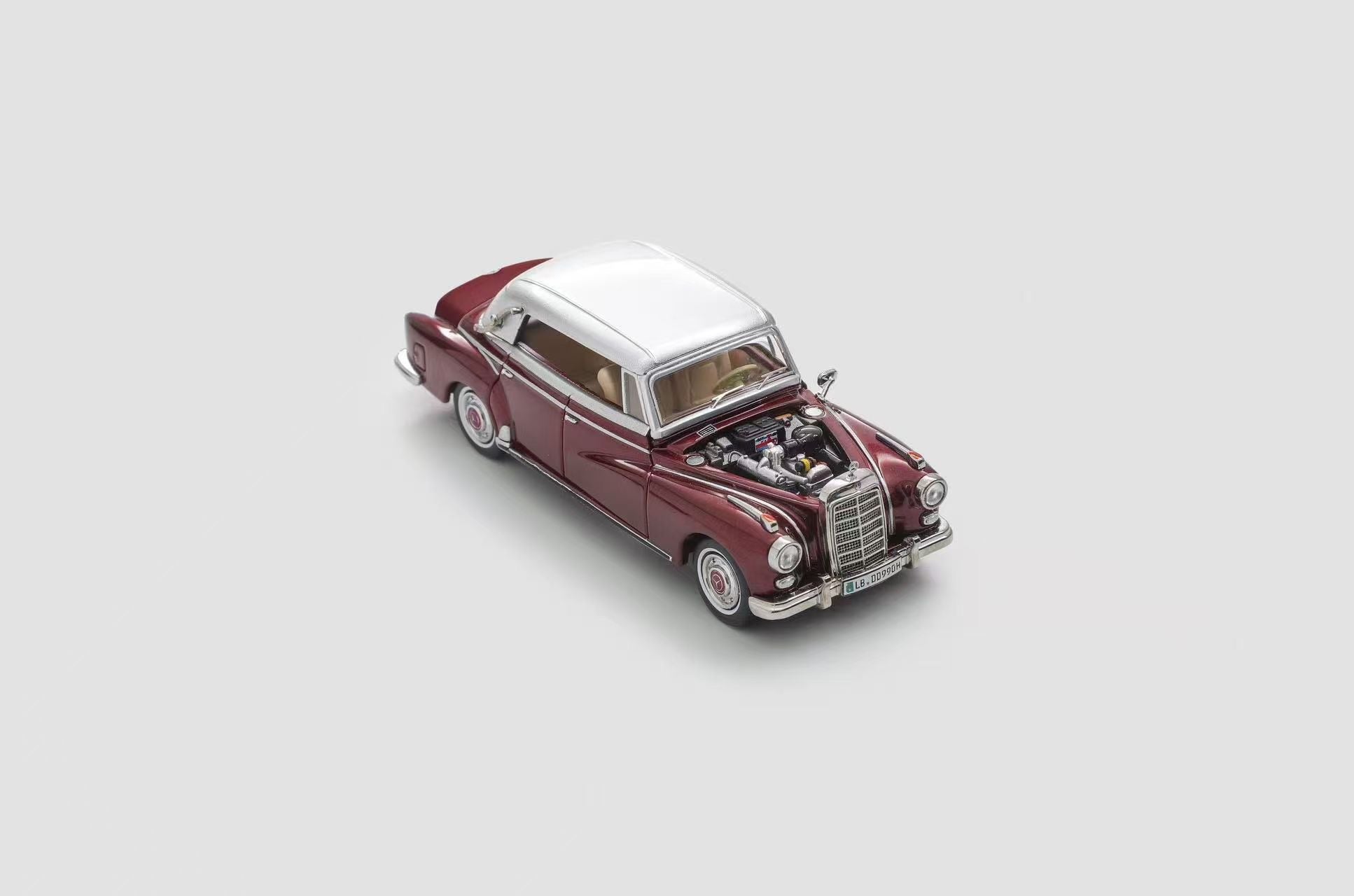 Mortal 1:64 Mercedes-Benz 300D Adenauer (W189) Soft Top Version Red & Silver Limited 499 Pieces (Removable Roof Top, Magnetic Removable Front Hood with Detailed Engine)