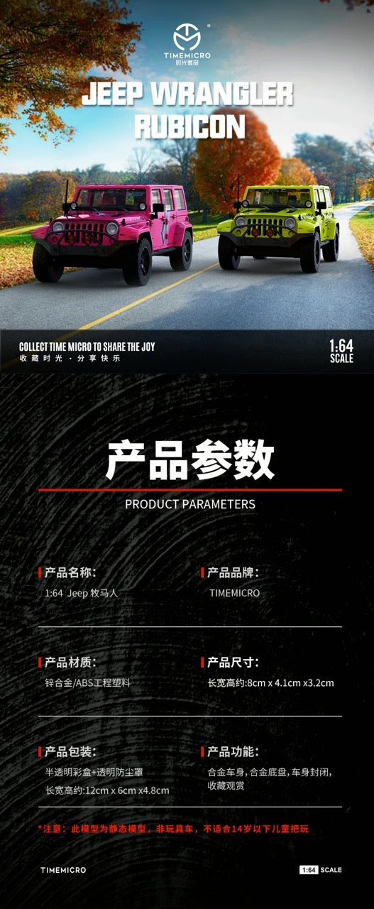 Time Micro 1/64 Jeep Wrangler Rubicon 4x4 4WD SUV Fluorescent Green Diecast Model Car