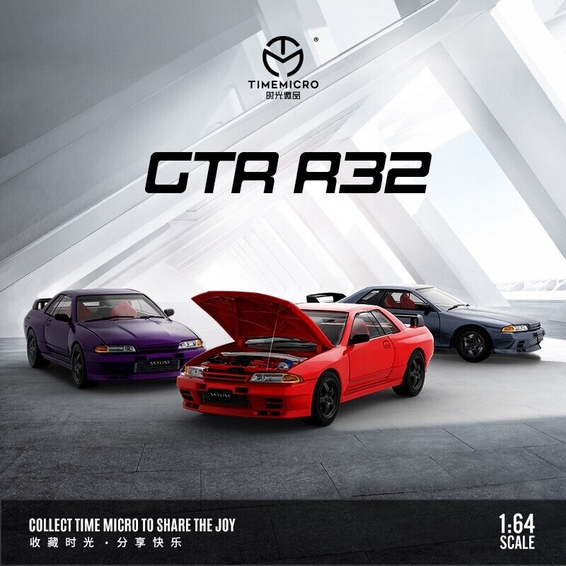 Time Micro 1/64 Nissan Skyline GT-R R32 Open Bonnet Engine Hood Metallic Red w/ Model Girl Miniature Figure