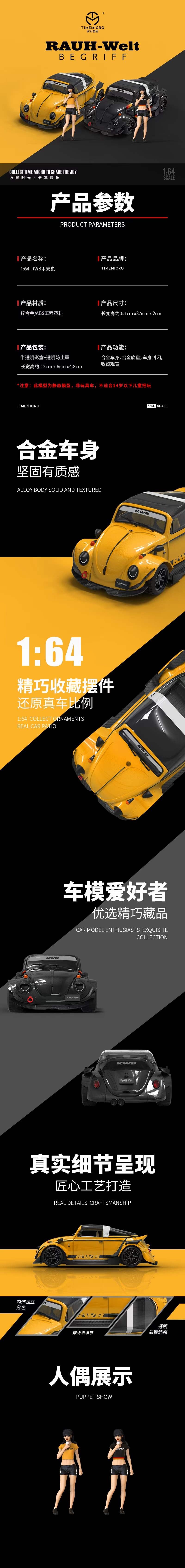 Time Micro 1:64 Volkswagen Beetle RWB Black with Model Girl Figure