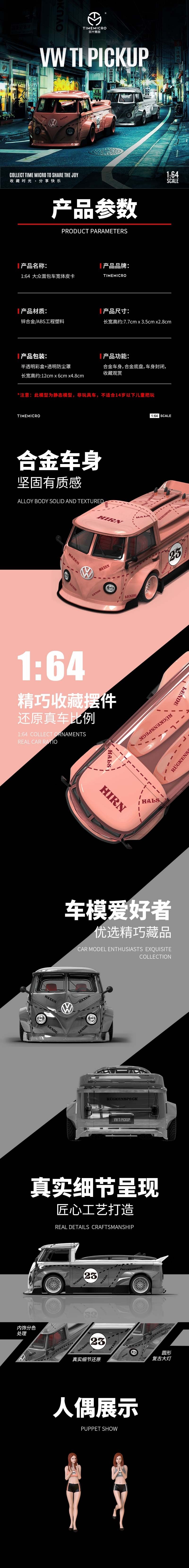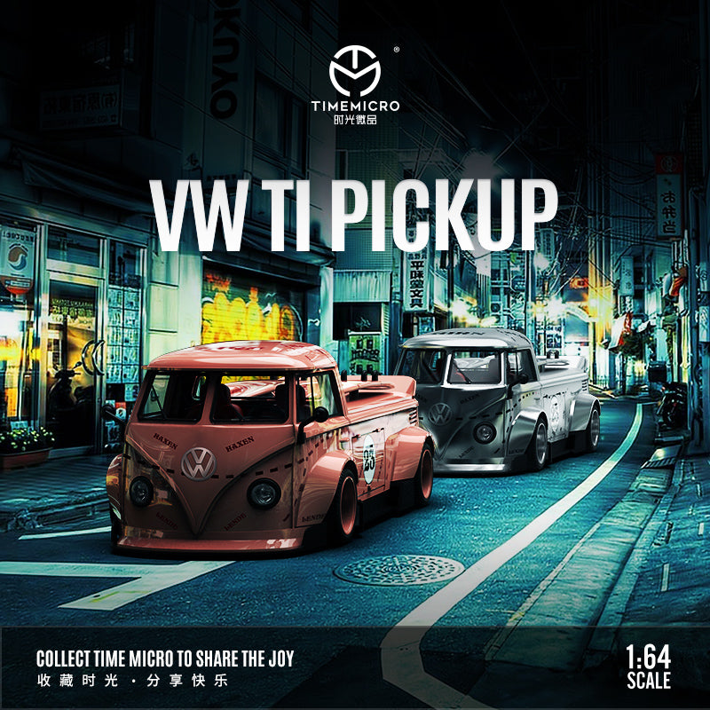 Time Micro 1/64 Volkswagen Kombi T1 Modified Wide Body Pick-Up Truck- Pink Pig with Model Girl Figure